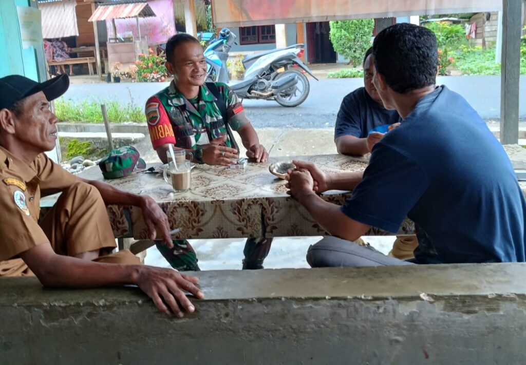 Ciptakan kedekatan dengan warga binaan Babinsa Praka Dosni Zai Koramil 01/Barus kodim 0211/TT melaksanakan Kegiatan komunikasi sosial (Komsos) di salah satu warung warga milik bapak Bungaran Sihotang bersama dengan Masyarakat di Desa Tumba Jae Kecamatan Manduamas, Sabtu (16 Agustus 2025).